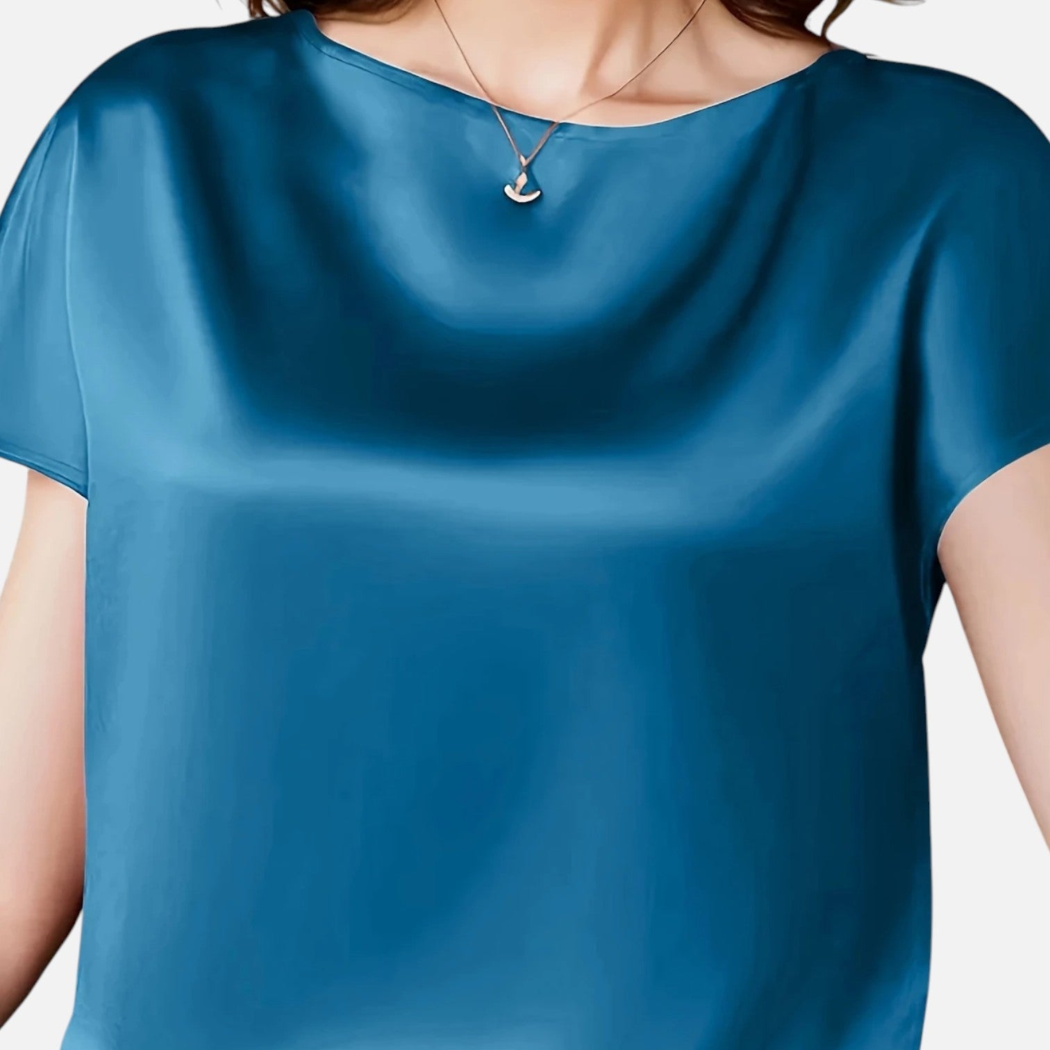 The Quelloria blouse blends high-shine satin texture with effortless style—ideal for refined everyday looks and transitional warm-weather wear.